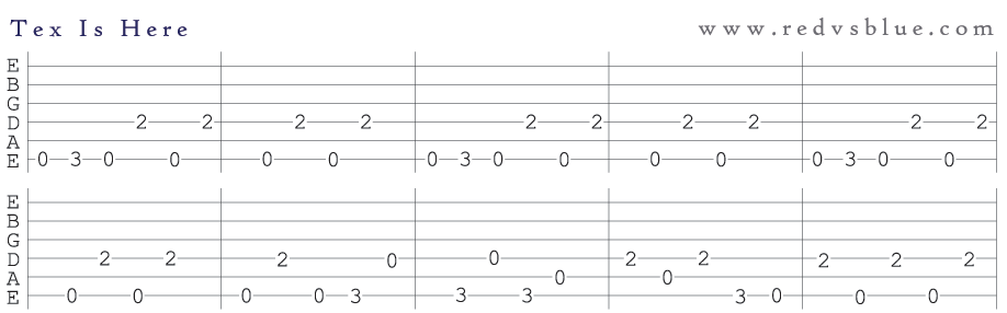 A: You can find tabs to the intro to Blood Gulch Blues and A Girl Named Tex here and here