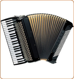 Wikipedia: Accordions, from 19th-century German Akkordeon, from Akkord—'musical chord, concord of sounds' are a family of box-shaped musical instruments of the bellows-driven free-reed aerophone type, colloquially referred to as a squeezebox.' |