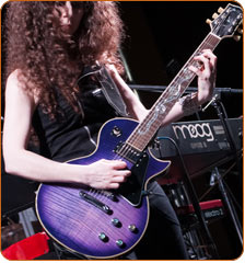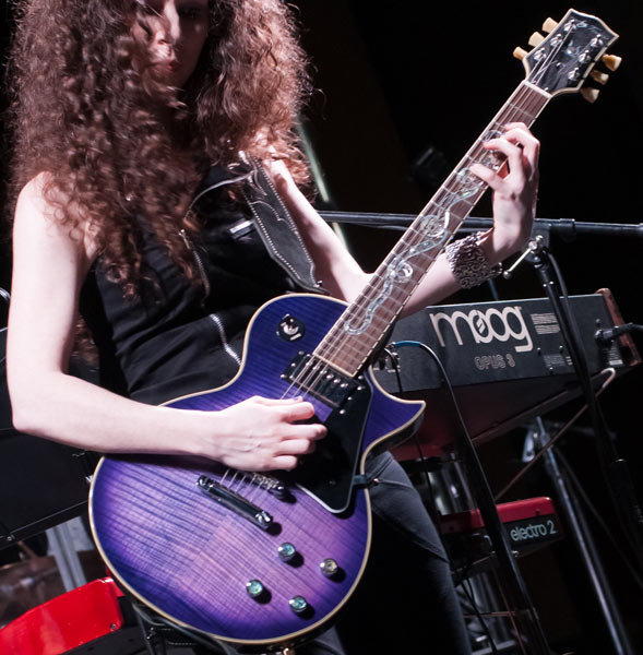 Violet says: this guitar was made by Jay Turser, very similar to the Gibson Les Paul but without the fancy name, it was discovered at a pawn shop once upon a time and I gave it a home. I put Seymour Duncan Phat Cat pickups in it, so it's pretty hot and bluesy. Photo credit: Sonja Carter