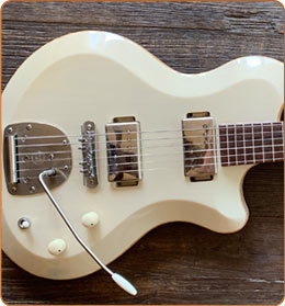 This Oceana guitar was made by West Coast luthier Paul Rhoney, who also made our Moog Oceana guitar. Like the Moog, this is a one-off that's different from his other guitars in that it has a longer scale length than his production Oceana model. This is a resonant guitar whose chambered body made it a good candidate for the atmospheric guitar parts in Red vs. Blue Season 17. Nico