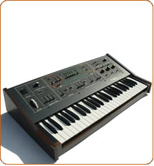 This synth has been with the band since 1997. You can see it pictured on our early shows with Susan, as well as our 2012 show in Austin, TX, with Violet at the helm. "Helm" is an appropriate term to describe this synth whose numerous sliders and controls make it seem more like a WWII U-boat than a musical instrument.