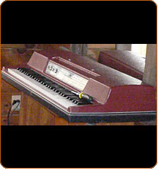 There are two basic schools as far as Electric Pianos go: much like Ford and Chevy, Coke and Pepsi, people tend to gravitate towards Rhodes EPs, or Wurlitzer EPs. Our EP200 is an old red one. Note that for some of our material, we sometimes use the Lounge Lizard EP-3, and we can't tell the difference between the two. Photo credit: Nico