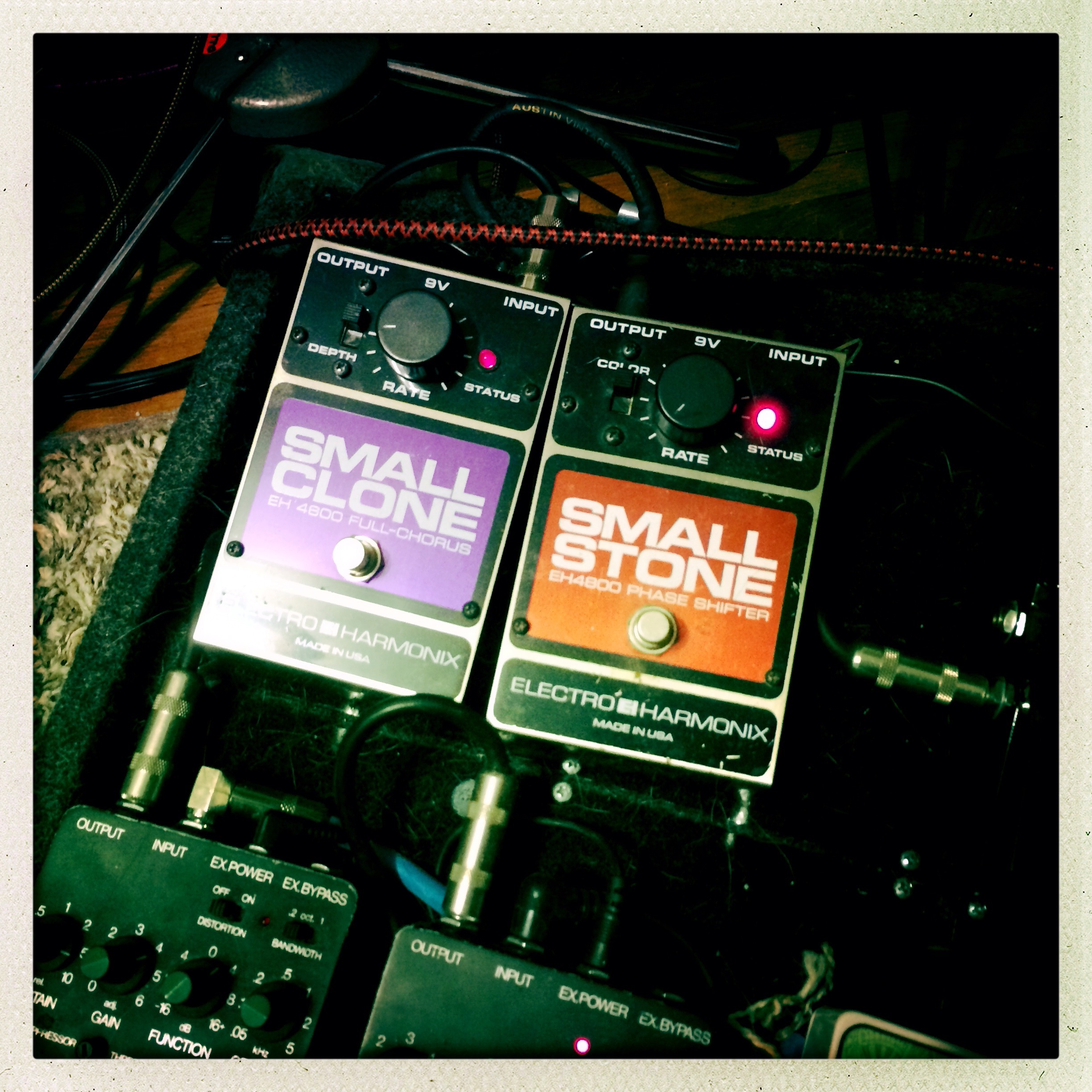 Like most (but not all) of Season 11's music, no keyboards were used. This was in an effort to get back to early BGC and away from the synth-heavy sound of Reconstruction. On Chorus, I used those two pedals, but the sounds you hear are being generated by the venerable Danelectro baritone guitar and being played live through another pedal.