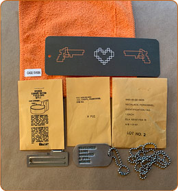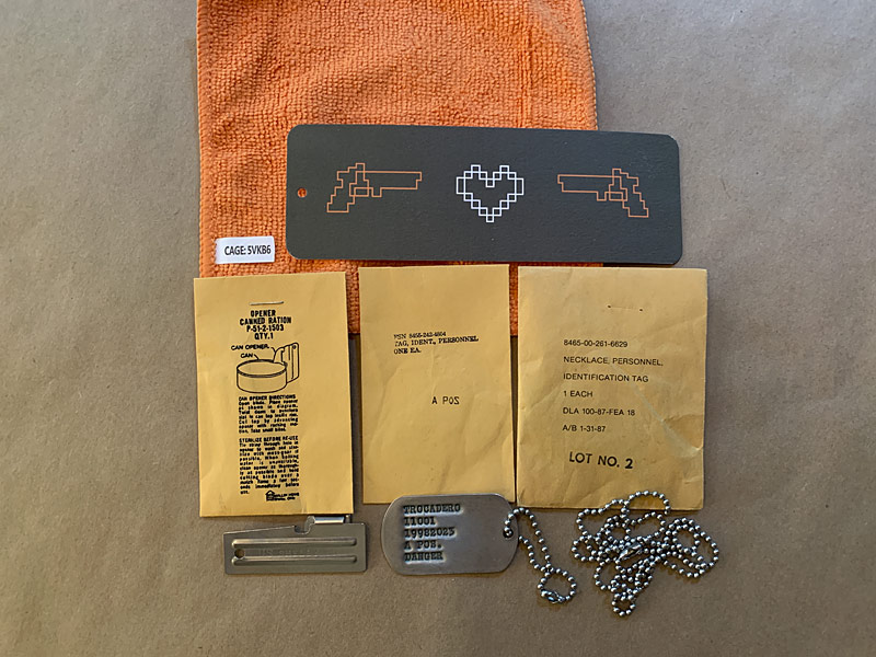 We also located some US Military dog tag ball necklaces — these are also new old stock from the 1980s, one long 27", and one short 5.5", NSN 8465-00-261-6629.